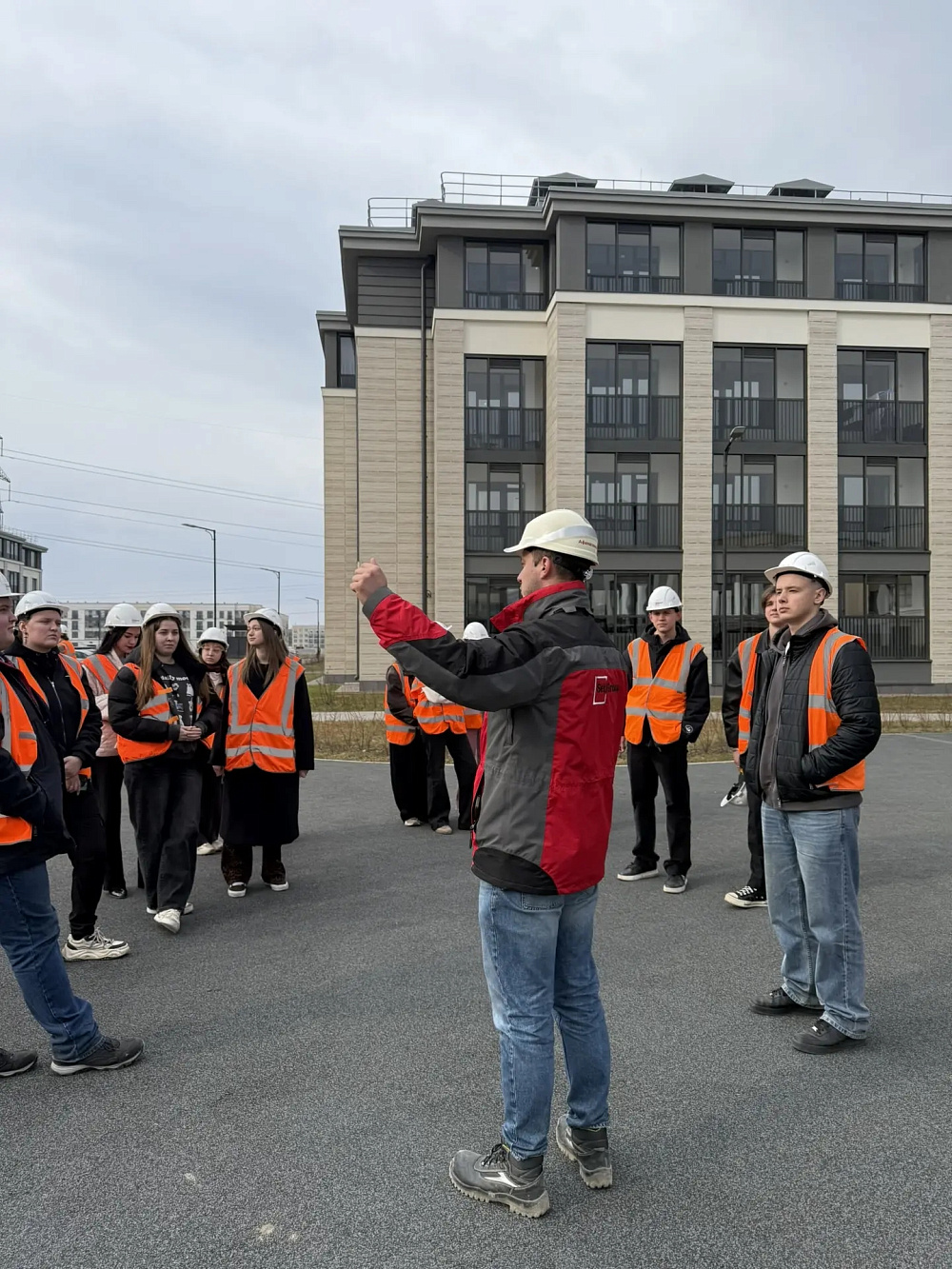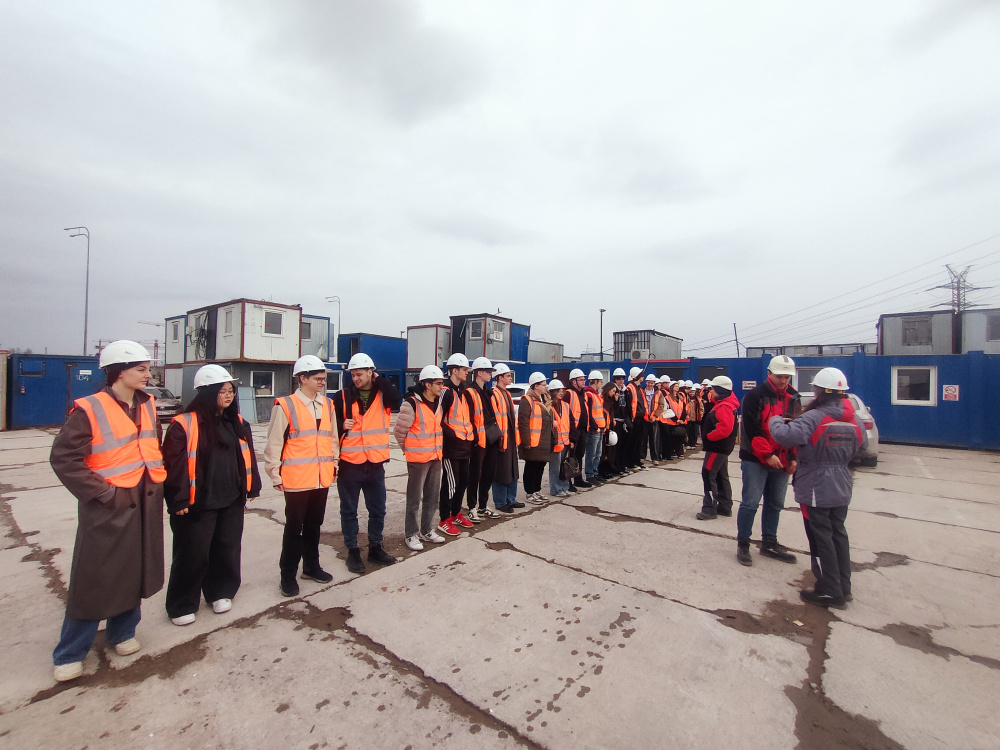 The construction site tour began with a mandatory step that every professional must complete: leading occupational safety specialist Maria Kuropatkina gave the students a detailed briefing. She emphasized that modern construction is a highly sensitive area, where knowledge of industrial safety regulations is just as important as mastery of engineering formulas.