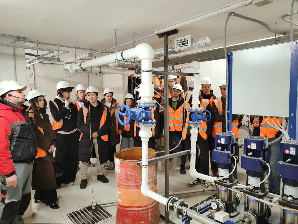 On 26 March, a large-scale career guidance tour was held for students majoring in Water Supply and Sanitation, organized with the support of Setl Group. The future engineers had a unique opportunity to step outside the lecture rooms and see how life support systems are designed and installed at a real facility – the "Palace Facade" residential complex. This low-rise residential complex is located on the southern shore of the Gulf of Finland, near the historic ensembles of Strelna and Peterhof.
