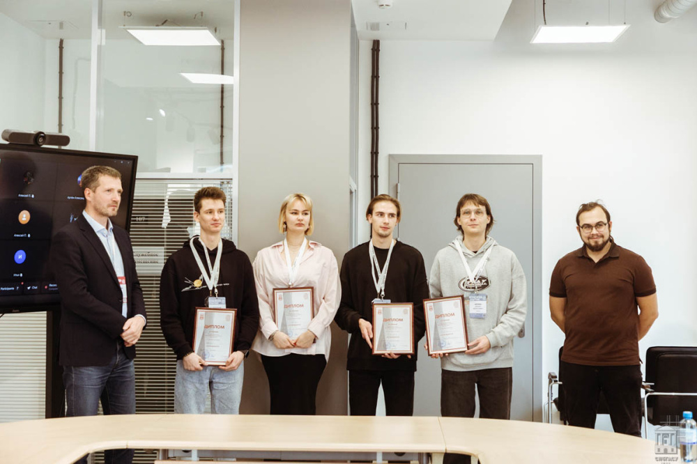Dmitry Yaroshutin (left), Nikolay Kozak (right) and the SPbGASU team: Igor Rudakov, Maria Zobova, Vyacheslav Zolotov, Danil Neprin
