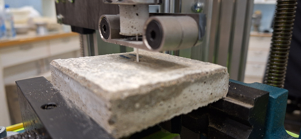 Specifically for this study, the Department of TCMM developed a setup for determining the fiber-matrix adhesion strength using a direct method. This setup consists of a loading device and a system of sensors that monitor displacements and the applied load. During testing, individual fibers are extracted from concrete specimens, after which diagrams are plotted showing the dependence of fiber displacements on the applied forces. The resulting diagrams are used to calculate the fiber-matrix adhesion strength. Furthermore, the dependence of fiber-matrix adhesion strength on the matrix composition and the depth of embedment was determined.
