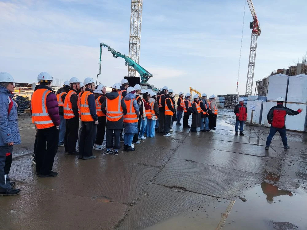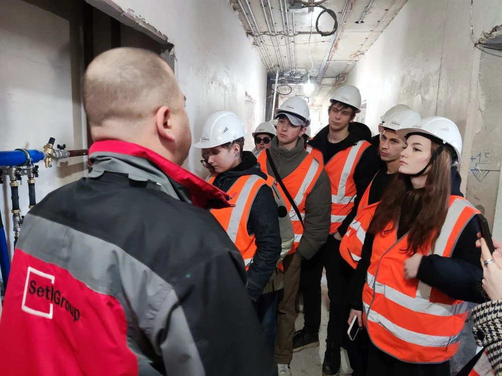 On 12 March, second- to fourth-year students from the SPbGASU Department of Heat and Gas Supply and Ventilation visited the construction site of the low-rise residential complex Univer City. The career guidance tour, organized by Setl Group, allowed the future engineers to experience the building's entire life cycle in a single day.