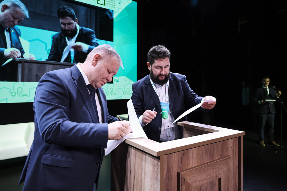 Sergey Petrichenko and Andrey Surovenkov signing the agreement