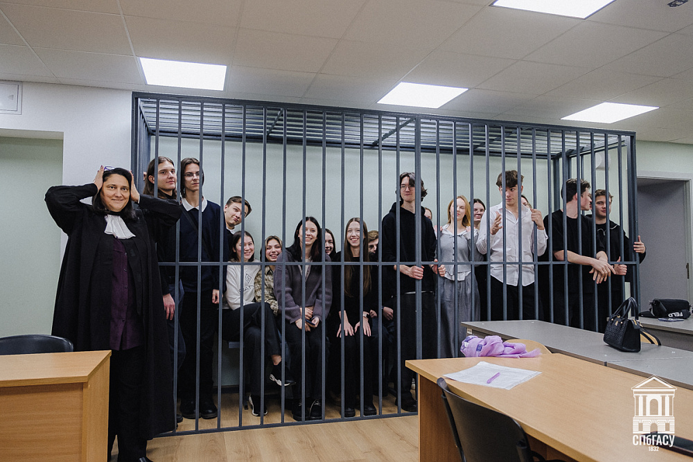 After completing all the competitions, participants took photos in a special photo zone at the Faculty, which resembled a real courtroom, where you could step into the "defendant's cage" and try on a judge's robe.
