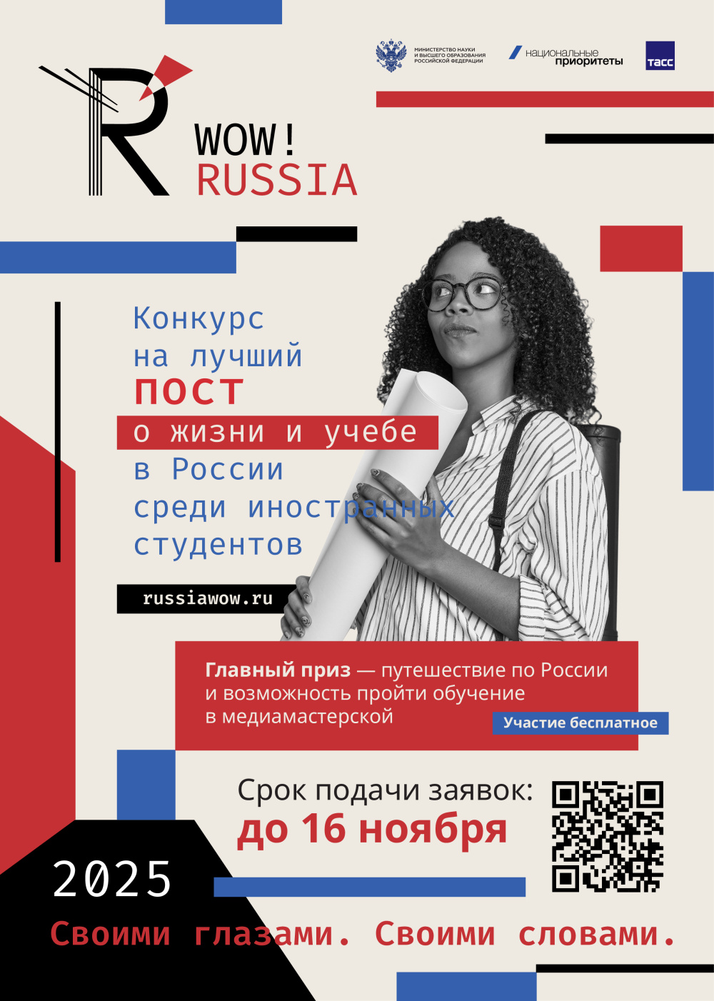 Департамент информационной политики и комплексной безопасности Минобрнауки России совместно с АНО «Национальные приоритеты» проводит конкурс для иностранных студентов российских вузов на лучшие обнародованные в социальных сетях посты о жизни и учёбе в России. Цель конкурса – укрепление позитивного образа России за рубежом в целях популяризации образования в России среди потенциальных абитуриентов из зарубежных стран.