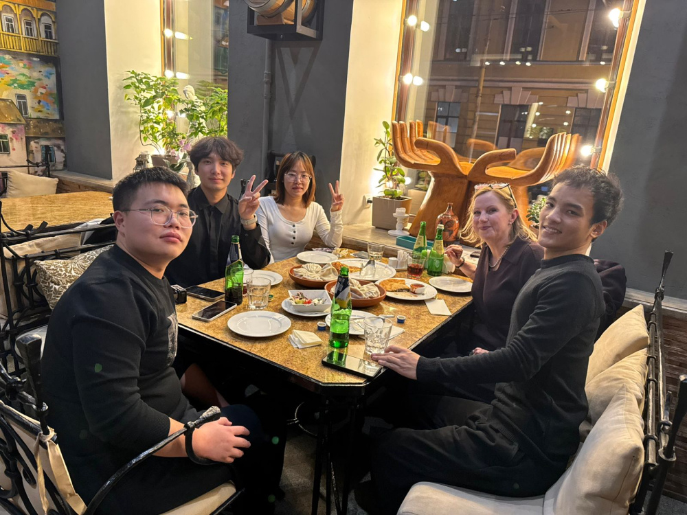 19 ноября обучающиеся из Китая в сопровождении доцента кафедры МК Наталии Тищенко знакомились с городом на Неве. После занятий китайские студенты попробовали грузинскую кухню в одном из многочисленных грузинских ресторанов, посетили старейший в городе магазин «Пассаж», полюбовались новогодними игрушками Императорского фарфорового завода.