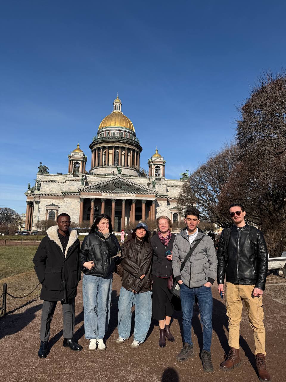 13 марта иностранные слушатели побывали на пешеходной экскурсии по маршруту Исаакиевский собор – Адмиралтейская набережная – Дворцовая площадь. Подготовила и провела экскурсию преподаватель кафедры межкультурной коммуникации Наталия Савельева.