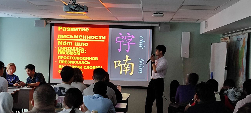 Студенты из Вьетнама не только рассказали многотрудную историю вьетнамского языка на примере заимствований, но и сопроводили своё выступление чудесной игрой на флейте.