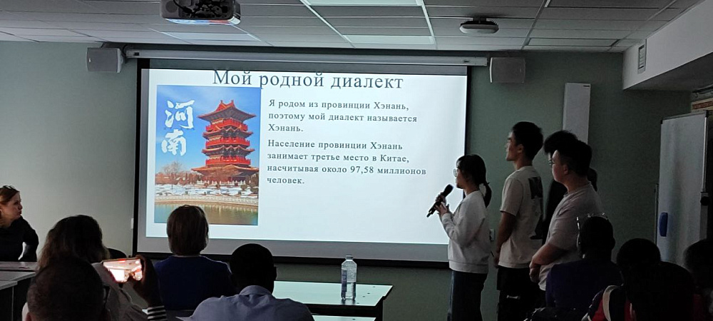 Каждый год в СПбГАСУ на обучение приезжают слушатели из китайской провинции Хэнань. Не исключением стал и этот год. Две группы китайских студентов смогли заинтересовать русских и иностранных гостей необычно поданной информацией о родном языке: одна группа подготовила целый урок китайского, и аудитория с удовольствием повторяла по-китайски формулы приветствия и благодарности, цифры и названия популярных блюд, а другая рассказала, что в Хэнане существует свой диалект, показали, как отличаются его слова от слов в литературном китайском языке, сопроводили это видами достопримечательностей и вкусной еды, снабдив фотографии краткими комментариями.