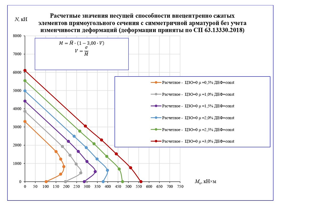 В существующих нормах проектирования железобетонных конструкций предельные относительные деформации бетона приняты как средние значения, тогда как прочностные характеристики принимаются с высоким уровнем обеспеченности. В расчётах по нелинейной деформационной модели именно деформации бетона и арматуры напрямую влияют на результат, а использование средних значений может снижать достоверность вычислений при определенных условиях.