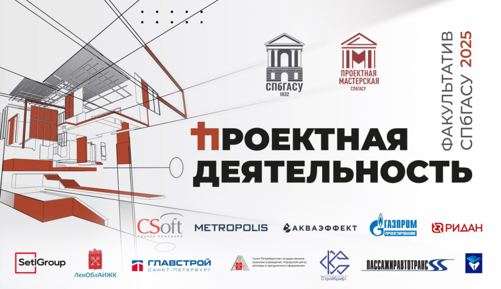 Организаторы факультатива выражают благодарность партнёрам программы, которые предоставили обучающимся возможность погрузиться в практическую работу над реальными проектами, консультировали и поддерживали их: АО «ЛенОблАИЖК», ООО «СтройКрафт», СПБ ГКУ «ГЦРПО», ООО Метрополис, ООО «Главстрой-СПб», ООО «Ридан Трейд», АО «Сисофт Разработка», ООО «Сэтл Строй», ООО «Архитектурное бюро «Сэтл Сити», ООО НИП «АКВАЭФФЕКТ», СПб ГУП «Пассажиравтотранс», ООО «Газпром проектирование».