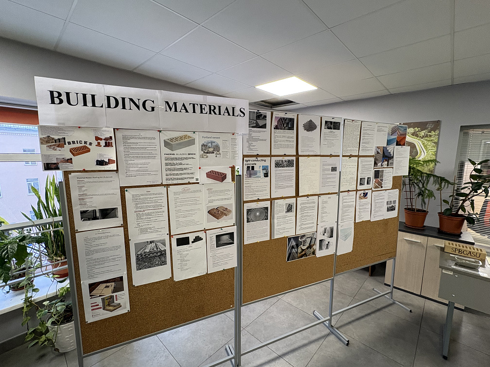 В рекреации кафедры межкультурной коммуникации (четвёртый этаж пятого корпуса СПбГАСУ) проходит выставка, подготовленная студентами. На ней представлены образцы современных строительных материалов и информация о них на английском языке.