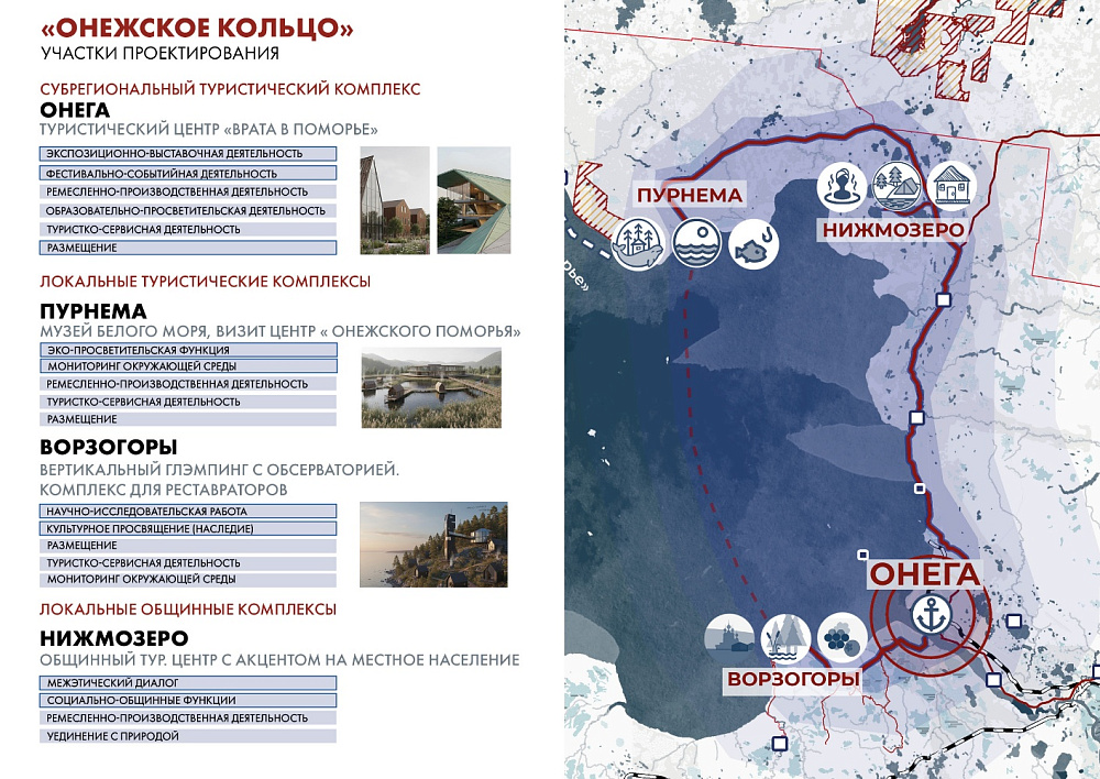 Магистрантки первого курса Валерия Трепыхалина и Арина Тихонова в своём исследовании сосредоточились на образе «Онеги будущего», который поможет привлечь в проект кадры и средства, сделать существующую среду более современной и комфортной, не разрушив при этом уклад жизни местного населения.