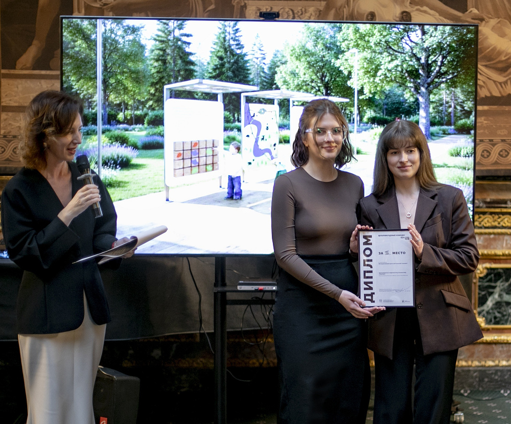 Полина Дёмина и Полина Ипатова, студентки четвёртого курса архитектурного факультета, направление «Градостроительство», заняли третье место в номинации «Интерактивный детский игровой элемент».