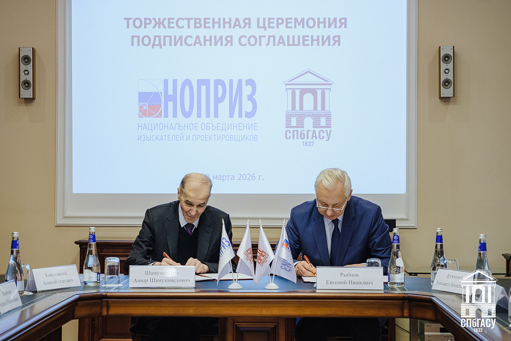 Подписанное соглашение рассчитано на пять лет и открывает новые возможности для расширения научно-образовательного сотрудничества между СПбГАСУ и НОПРИЗ.