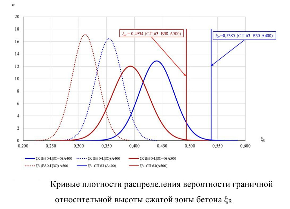 - обеспеченность предельного коэффициента армирования μR и связанных с ним параметров (ξR, ω) до ЦЗО уже является недостаточной по нормативным документам, а после воздействия знакопеременных температур снижается практически до нуля для различных классов арматуры, что существенно повышает риск хрупкого разрушения и возникновения аварийных ситуаций.