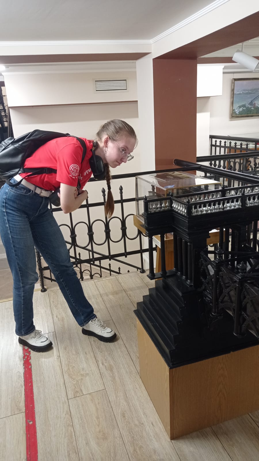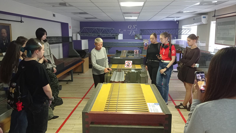 Музей мостов в Петербурге – это богатейшее собрание, рассказывающее историю мостостроения. Оно включает более 60 моделей мостов и сотни документов, чертежей, фотографий и картин. Особый интерес у студентов вызвали вопросы безопасности при строительстве водных переправ, а также история постройки полуверстового Веребьинского моста на железной дороге из Петербурга в Москву в середине XIX в. под руководством Дмитрия Ивановича Журавского. Длина моста составляла около 550 метров, а высота над уровнем воды в реке Веребье – 53 метра. Деревянный мост был выдающимся образцом инженерного искусства для своего времени.