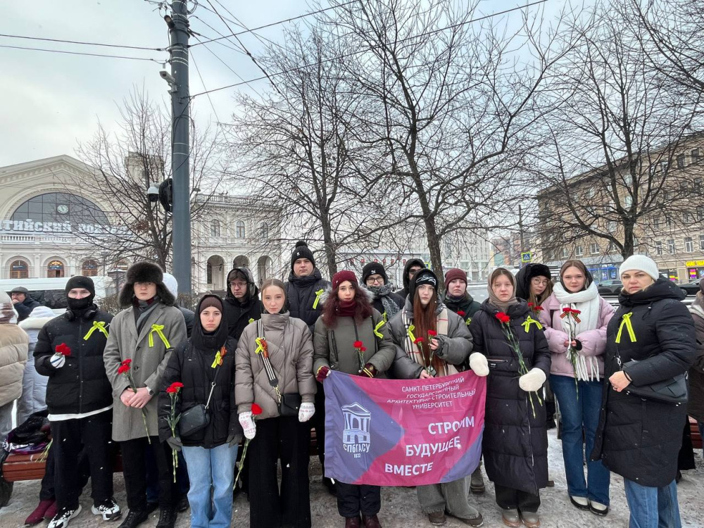 Студенты СПбГАСУ также приняли участие в торжественно-траурной церемонии на Пискарёвском мемориальном кладбище. Возложением цветов к монументу «Мать-Родина» её участники почтили память тех, кто погиб в страшные блокадные дни.