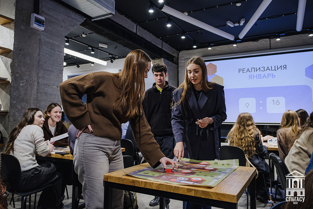 Продолжением лекции стала деловая игра «Управление промысловой стройкой», в которой приняли участие 32 студента СПбГАСУ.