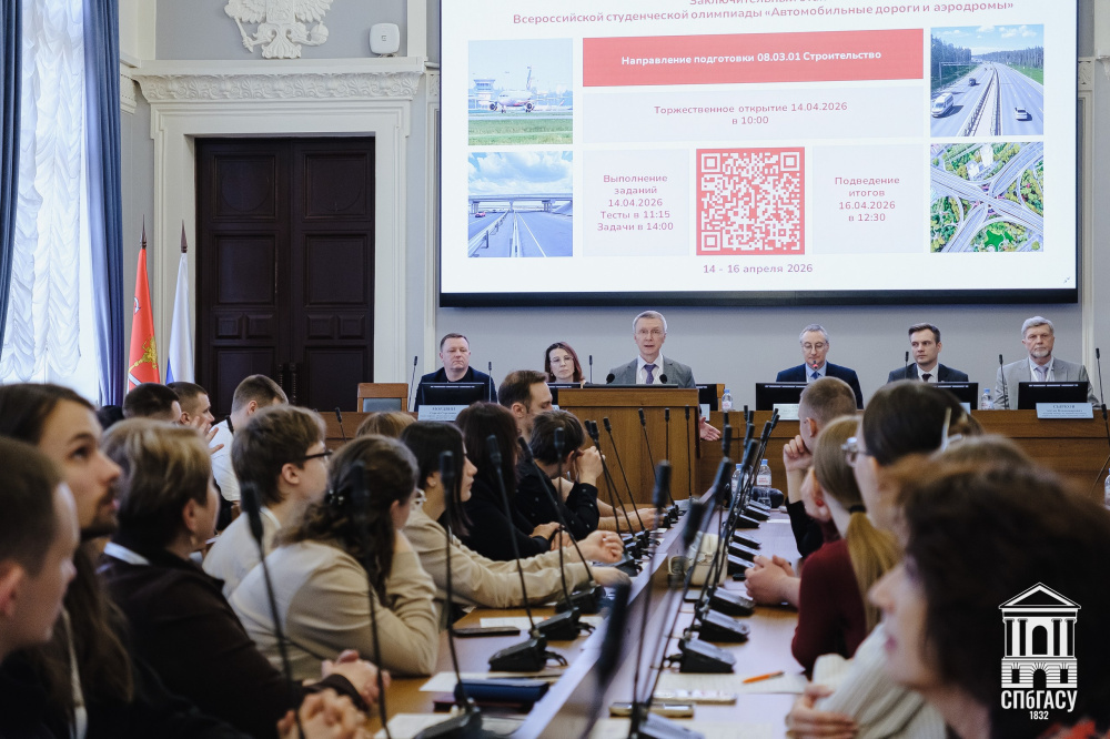 14 апреля в Санкт-Петербургском государственном архитектурно-строительном университете состоялось торжественное открытие заключительного этапа Всероссийской студенческой олимпиады «Автомобильные дороги и аэродромы» по направлению подготовки 08.03.01 «Строительство» (уровень бакалавриат).