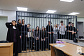 После прохождения конкурсов участники сфотографировались в учебном зале судебных заседаний, где можно зайти в «клетку подсудимого» и примерить судейскую мантию.