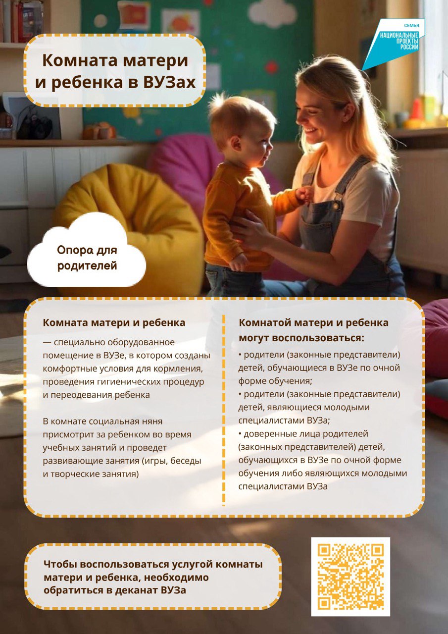 В рамках исполнения поручений Президента РФ и Правительства РФ и Стратегии действий по реализации семейной и демографической политики, поддержке многодетности в РФ до 2036 г. осуществляется комплексная модель поддержки студенческих семей в формате «Единого окна».